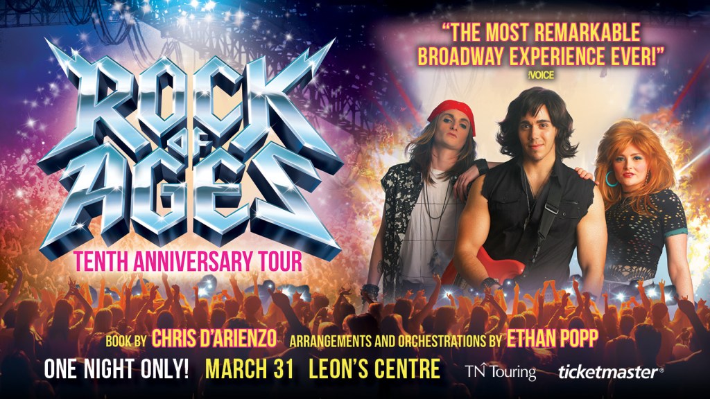 Rock Of Ages Where The Leon's Centre, Kingston, Ontario, Canada Map When Mar 31/19 12:00 AM - Mar 31/19 12:00 AM Age All Price Starting at $$49.50-$89.50 Buy Tickets Website http://www.leonscentre.com/