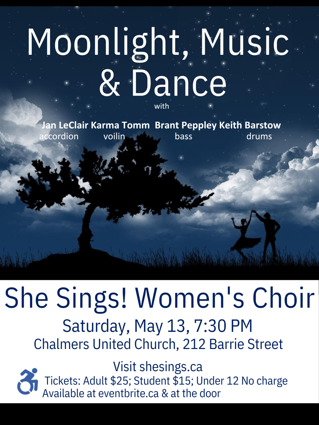 Please join us Saturday, May 13, 7:30 PM, at Chalmers United Church for Moonlight, Music & Dance.