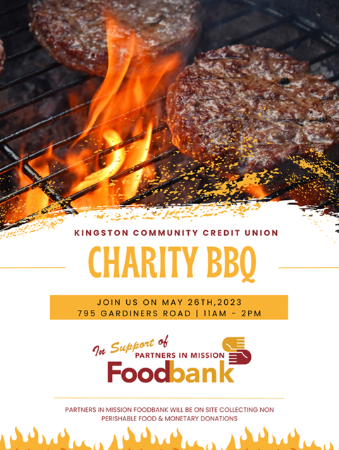 On May 26, 2023 – Stop by the Kingston Community Credit Union from 11:00 AM to 2:00 PM for a BBQ! The entire event is in support of the Partners in Mission Foodbank who would be onsite!