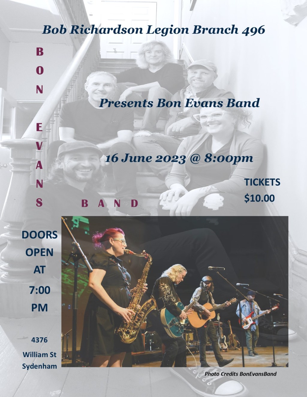 Branch 496 in Sydenham has the Bon Evans Band playing in the hall. Message on Facebook Page or email RCLBranch496.FBpage@gmail.com. Tickets on sale at the Legion downstairs or at the Sydenham OneStop.