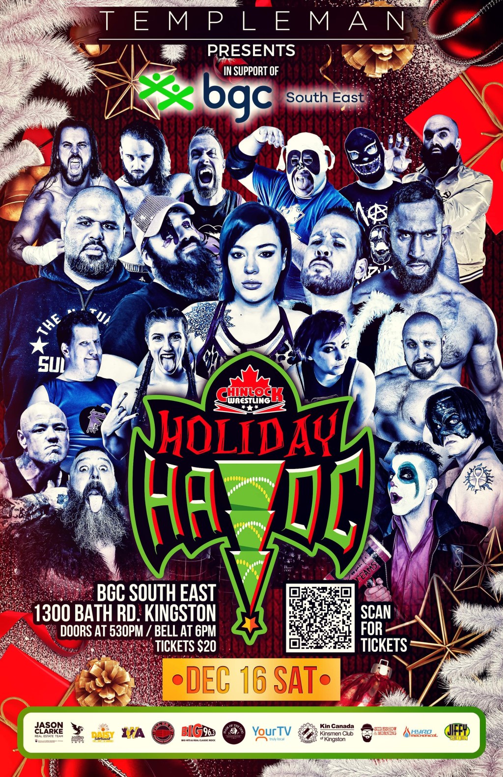 Templeman LLP presents Holiday Havoc in support of the boys and girls club. Join us as the stars of Chinlock Wrestling join us for a fun, family friendly night of professional wrestling, complete with special guests, surprises and who knows what else. Please feel free to bring a non-perishable food item for the local food bank.
