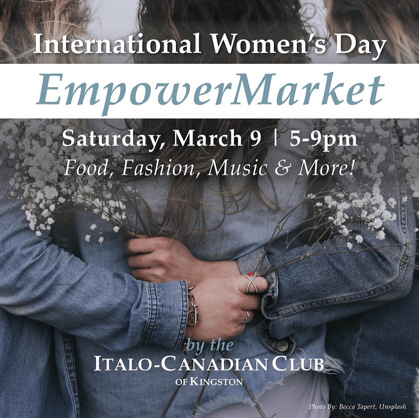 This year’s International Women’s Day event by the Italo-Canadian Club of Kingston is called the “EmpowerMarket”. It will be a networking/vendor fair with local female vendors, live and static food stations, complimentary cocktails, door prizes, live music, a fashion show and our annual Inspirational Woman Award presentation.This campaign is meant to empower and celebrate local women in our community. We will also raise money with a silent auction for three local non-profits focused on helping women: Dress for Success, Dawn House and MRKH Canada.Tickets can be purchased in advance, or at the door.Tickets include:– Access to the vendor market, silent auction, live music performances and Inspirational – – Woman Award ceremony– Complimentary Cocktail– Chance to win door prizes– Complimentary food ticket for live gnocchi food station– Access to Charcuterie Food Station* Swag Bags for the first 50 ticket holders!In addition to a generous charcuterie station featuring premium cheeses sponsored by Flight Cheese Shop, everyone who attends will receive a ticket to use towards Chef Chris’s live ricotta gnocchi station, which will be open from 5:30-8:30 pm during the event.We have two musical performances lined up for this event:ATIARI: The stage name and solo creative project of Ari Bautista, a Filipino-Canadian singer-songwriter, multi-instrumentalist, and composer. Her self-titled debut album – a sonic culmination of years inspired by R&B, soul, jazz, pop, contemporary folk, and electronic music – explores many topics: unrequited love, trauma, addiction, family, and other “matters of the heart”. You may read more about their creative pursuits on their website, ATIARI.com. You can follow Ari @ATIARI.wav on Facebook and Instagram.Come shop and talk to over a dozen local female vendors selling anything from bath & wellness products, to clothing, baked goods, jewelry, art, home items and more!THE CAUSESOne of the ways we will use this campaign to enact lasting, sustainable change in our community is by raising money for local non-profits whose primary mission is in the service of women. We will be donating a portion of the proceeds from our silent auction at the event to the organizations below. Any additional donations received during the campaign will also be split between all of the non-profits involved (we are a not-for-profit organization as well). This year’s community partners are Dress For Success, Dawn House and MRKH Canada.
