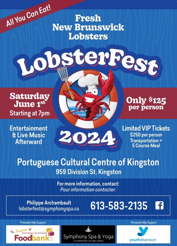 Lobsterfest 2024 will be held at the Portuguese Cultural Center of Kingston. Fresh New Brunswick lobsters, live music, and tons of fun!